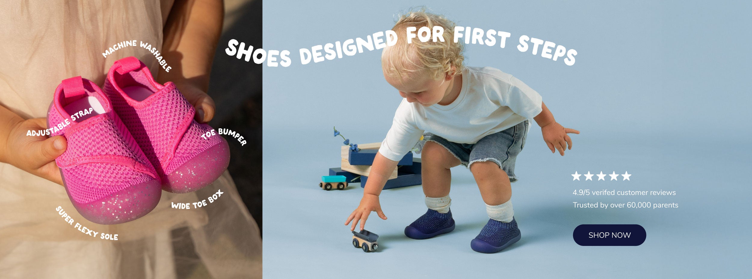 Duckies have a wide toe box that allows for their growing toes to move freely, supporting healthy foot development.